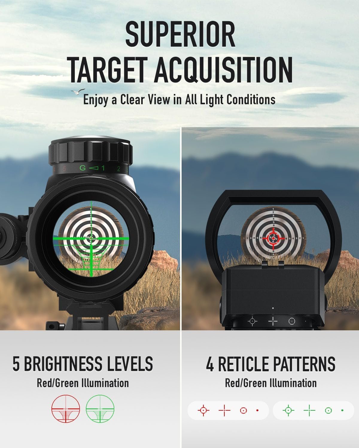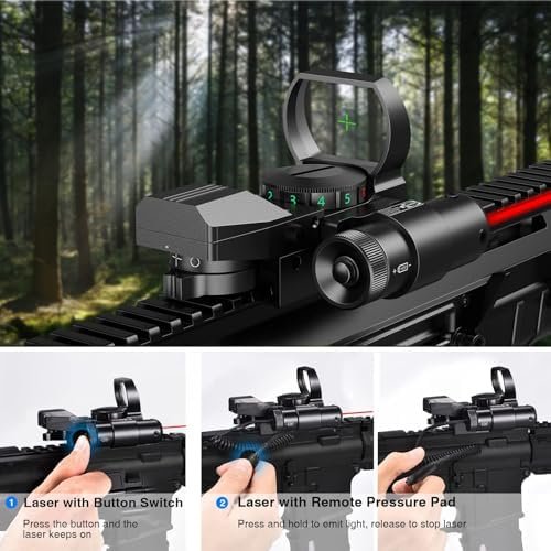 Combo Optic Systems$196.49Rated 4.78 out of 5CVLIFE 1X22X33 Reflex Sight Red Dot Sight Red Green 4 Reticle Optics with Laser and Pressure Pad Switch for 20mm Rail : Sports & Outdoors