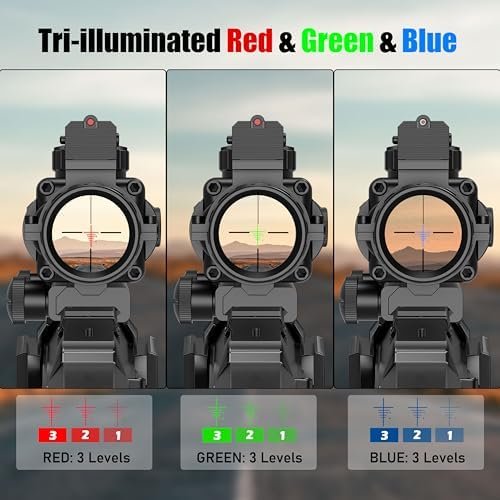 Optics, Scopes$40.74Rated 4.71 out of 5UUQ Prism 4×32 Red/Green/Blue Triple Illuminated Rapid Range Reticle Rifle Scope W/Top Fiber Optic Sight and Weaver Slots (BDC Reticle) : Sports & Outdoors