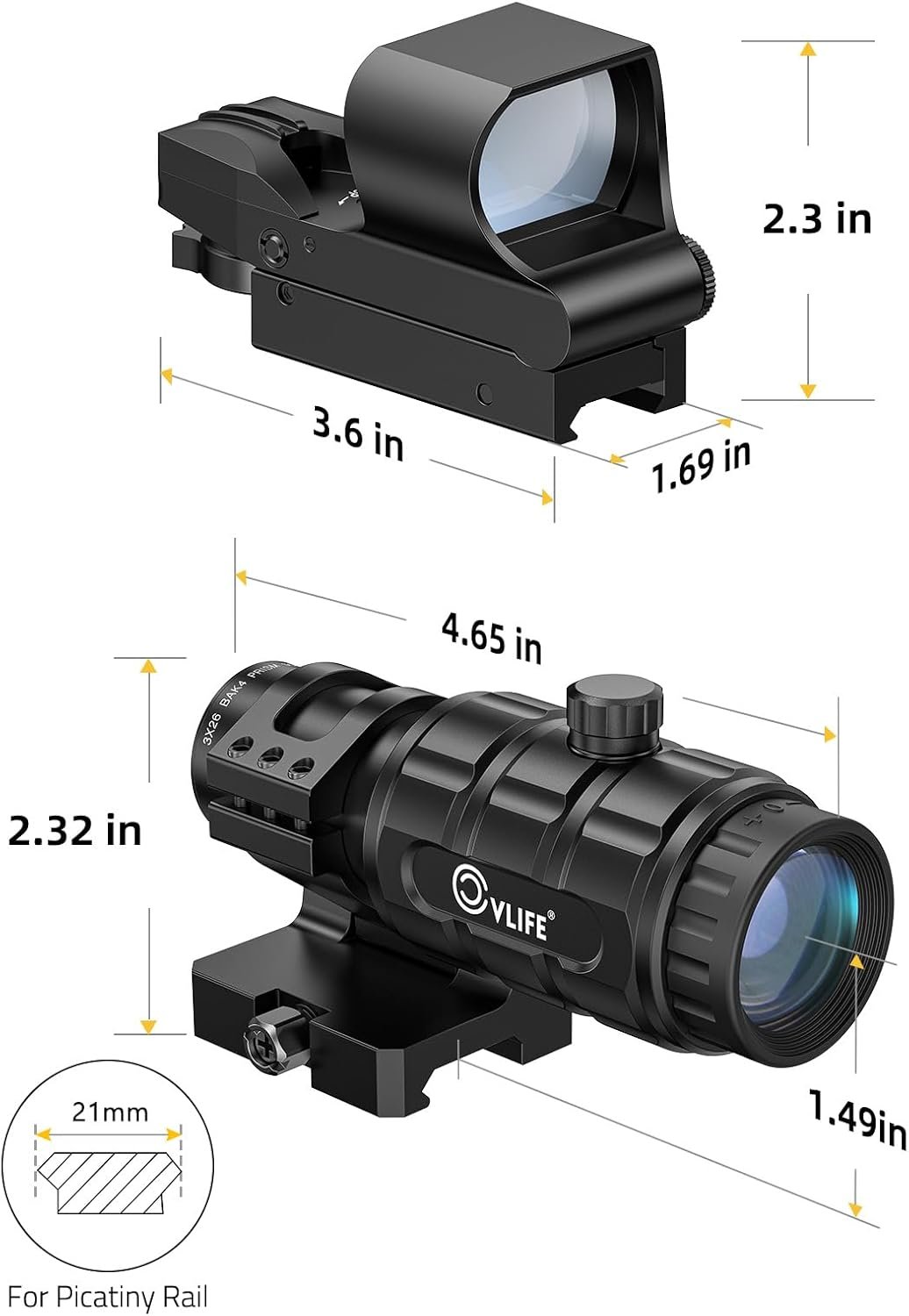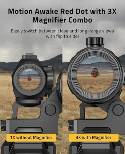 CVLIFE JackalHowl Red Dot Sight & 3X Magnifier Combo Set, 2 MOA Motion Awake Red Dot Optics and Flip-to-Side Magnifier Kit, Absolute Co-Witness Mount : Sports & Outdoors